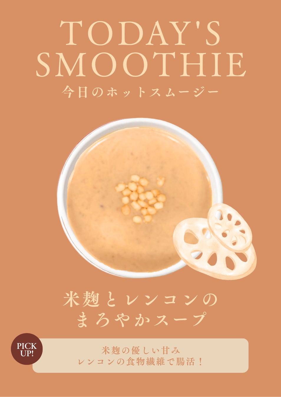 ・トリュフ香る あらごしきのこスープ ・米麹とレンコンのまろやかスープ など |