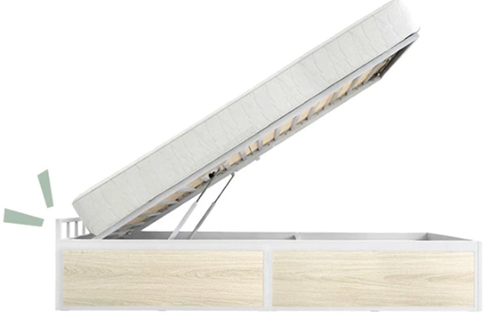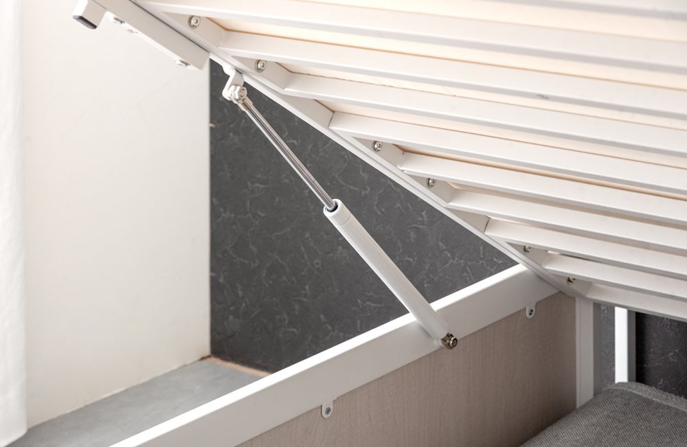 本製品は、スムーズな開閉をサポートする「ガス圧式」を採用しました。これによりマットレスを置いたまま楽に開閉することが可能です。