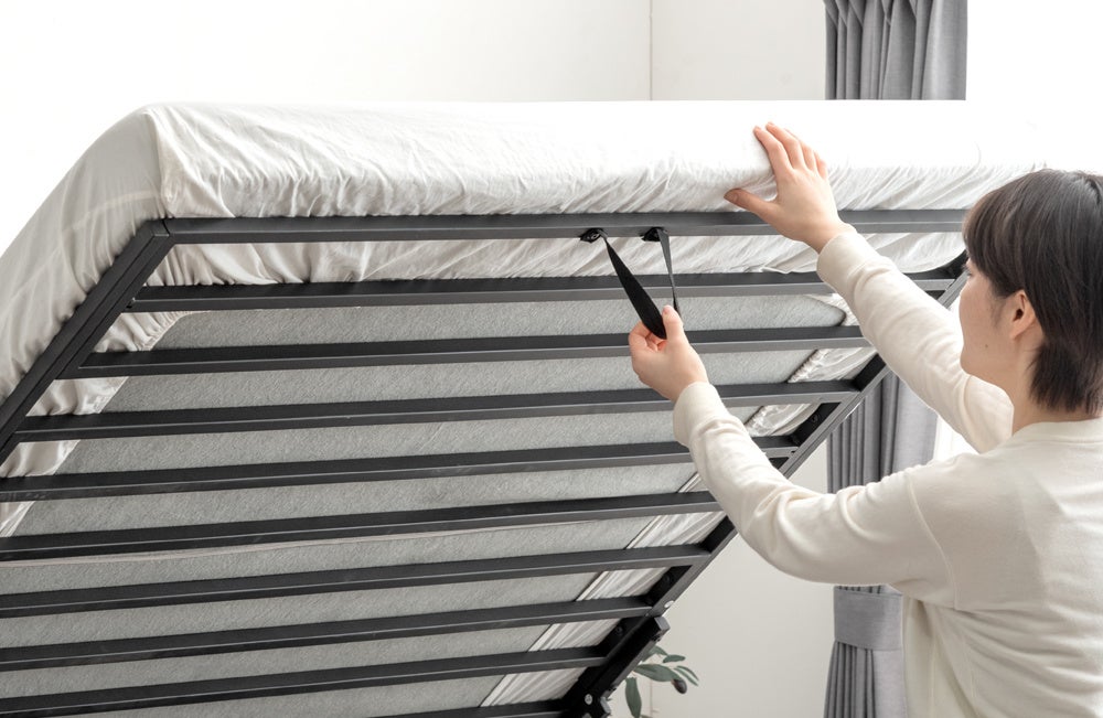 跳ね上げ時にマットレスが滑り落ちることを防ぐ落下防止ストッパーも備えています。