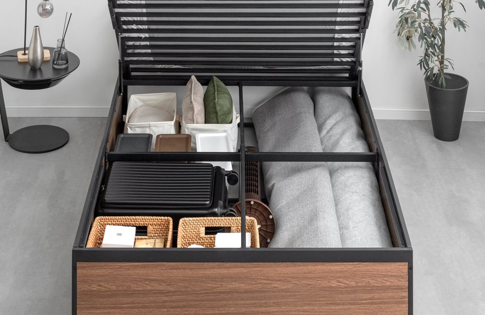 大型荷物も丸ごと収まる圧倒的容量で空間を有効活用!スぺパ抜群の『跳ね上げ式ベッドフレーム』を発売
