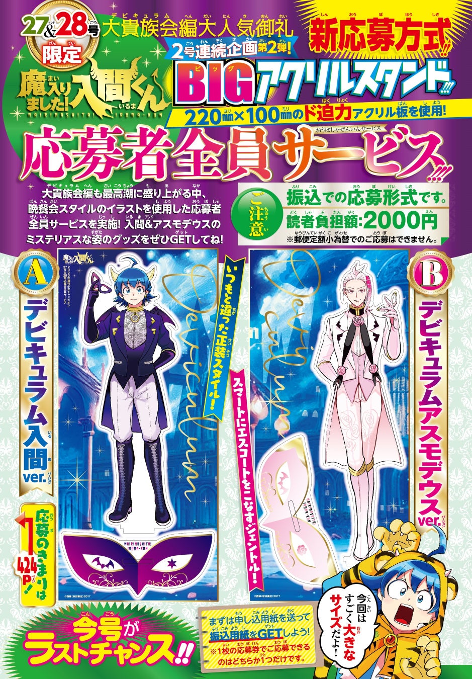 さらに、「魔入りました!入間くん」の220mm×100mmのBIGアクリルスタンドの応募者全員サービスが、前号に続き28号でも実施! クライマックスに向けて盛り上がる「デビキュラム編」の装いをまといジェントルマンスタイルとなった、鈴木入間、アスモデウス・アリスをGETできます! 28号までの限定施策、お見逃しなく!