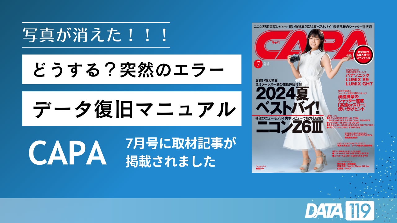 「企業データとAIの利活用カンパニー」AOSデータ株式会社(本社:東京都港区、代表取締役社長:吉田 宣也)は、株式会社ワン・パブリッシングのカメラ雑誌『CAPA』(キャパ)7月号に、写真や動画データが消失した際の対処法について取材記事を掲載いただきました。