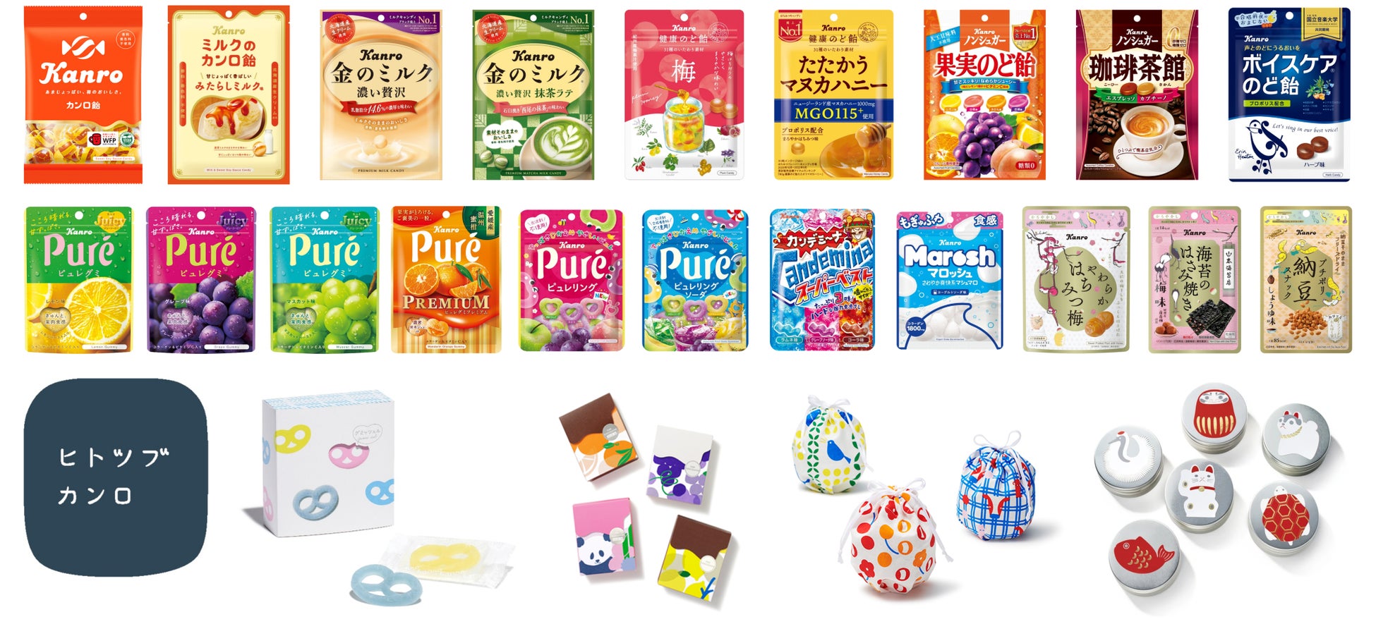 当社は創業から110年、社名になっている「カンロ飴」を始め、ミルクフレーバーキャンディ市場売上No.1ブランド※「金のミルク」、菓子食品業界で初ののど飴となる「健康のど飴」、大人の女性に向けたグミ市場を創り上げた「ピュレグミ」など、常に消費者の皆様から愛され続ける商品を創り続けてまいりました。2012年からは直営店「ヒトツブカンロ」を運営し、「ヒトからヒトへ つながる ヒトツブ」をコンセプトにキャンディの魅力を発信しています。