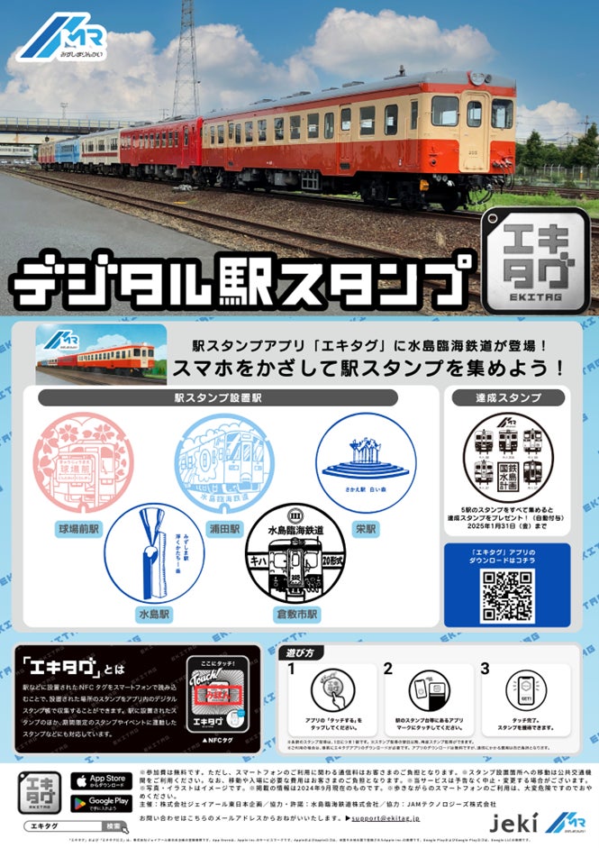 ◎水島臨海鉄道株式会社(以下、「水島臨海鉄道」という)は、2024年10月1日より、株式会社ジェイアール東日本企画が運営するデジタル駅スタンプアプリ「エキタグ」を導入いたします。