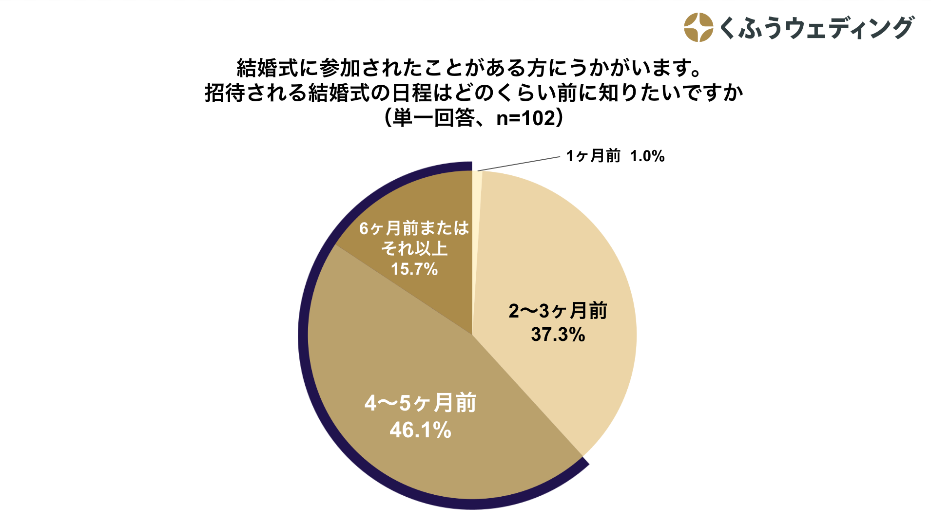 〜【みんなのウェディング調査】結婚式に参加した経験のある人の6割以上が、4〜5ヶ月以上前には結婚式の日程を知りたいと回答〜