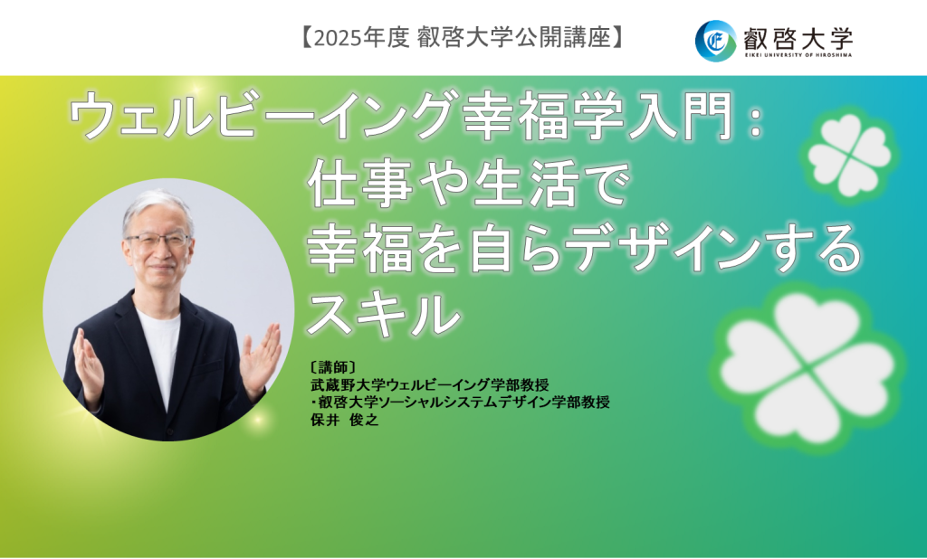 【受講者募集】2025年度公開講座 ウェルビーイング幸福学入門 : 仕事や生活で幸福を自らデザインするスキル - 【公式サイト】広島県公立大学法人 叡啓大学