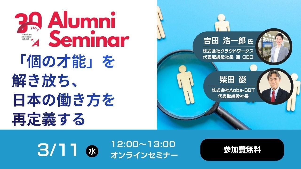 株式会社Aoba-BBT(本社:東京都千代田区、代表取締役社長:柴田巌、以下Aoba-BBT)は、グループ横断で推進する「周年プロジェクト」の象徴的な企画として、2026年3月11日(水)に特別オンライン対談イベントを開催いたします。