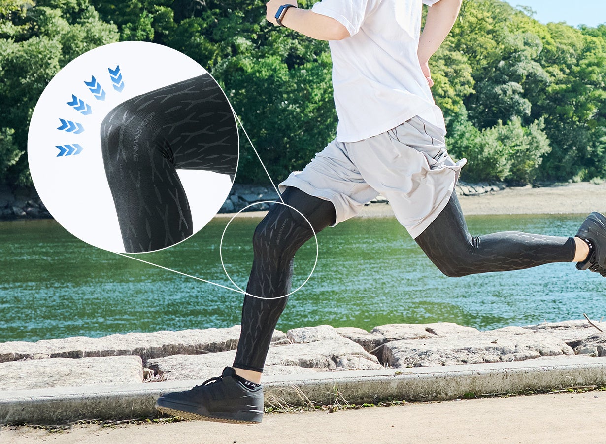 サポーター技術を応用した2層構造で脚を引き上げ、次の一歩を軽々と振り出せるアンダーウェア