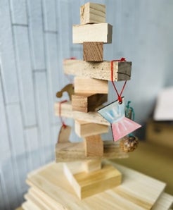 さがみはら津久井産材の様々な樹種の木片をお好きに選んでいただき、色を付けて、世界に一つだけのオリジナルクリスマスツリーを製作することができます!