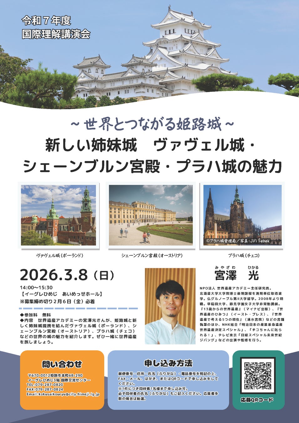 令和7年度国際理解講演会「世界とつながる姫路城ー新しい姉妹城ヴァヴェル城・シェーンブルン宮殿・プラハ城の魅力」の開催について