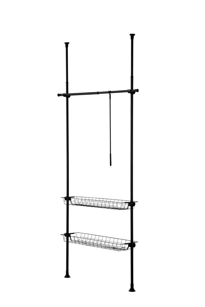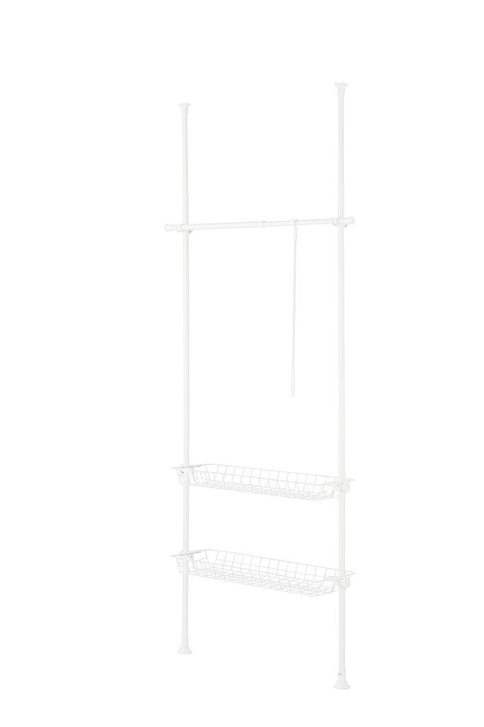 縦に突っ張るだけで簡単に設置でき、ハンガーポールとラックにたっぷり収納していただけます。