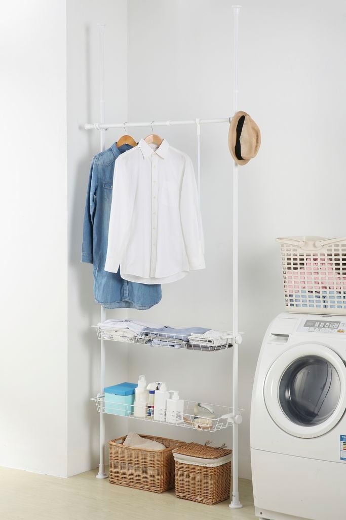 洗濯物を洗って干して、たたんで収納するという一連の動作をスムーズに行いたい場合にも、おすすめのアイテムです。便利なつっぱりハンガーラックを、ぜひお試しください。