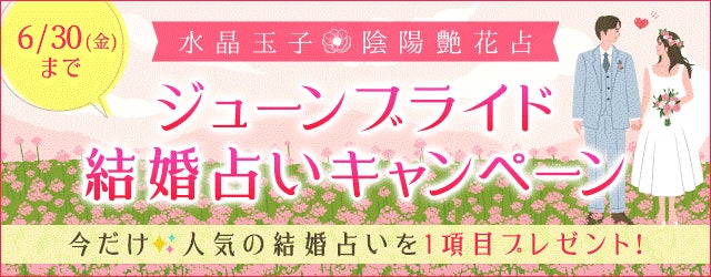 テレシスネットワーク株式会社(本社:東京都港区、代表取締役:鷹石惠充)は、2023年6月15日(木)より、月額公式サイト『水晶玉子 陰陽艶花占』にて『ジューンブライド結婚占いキャンペーン』を公開いたしました。