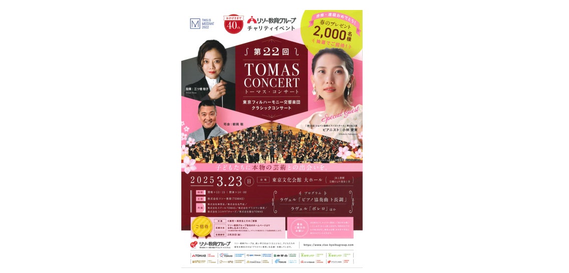 株式会社リソー教育(本社:東京都豊島区、代表取締役:天坊真彦)は、2025年3月23日(日)に「第22回 トーマス・コンサート」を開催いたしました。