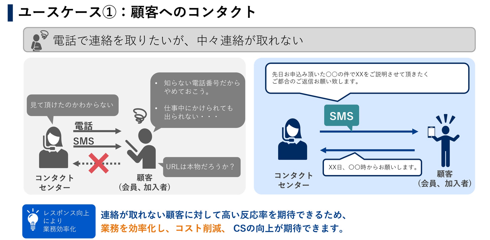 SMS(ショートメッセージサービス)は、電話番号だけでの配信、またアプリ不要で多くのユーザへの配信が可能なため、エンドユーザへのより確実な通知手段として広く利用されています。しかし、これまで企業とエンドユーザがSMSを双方向に送受信する場合には、企業側が国内モバイルキャリア4社の利用者向けにそれぞれ個別の番号を用意する必要がありました。
