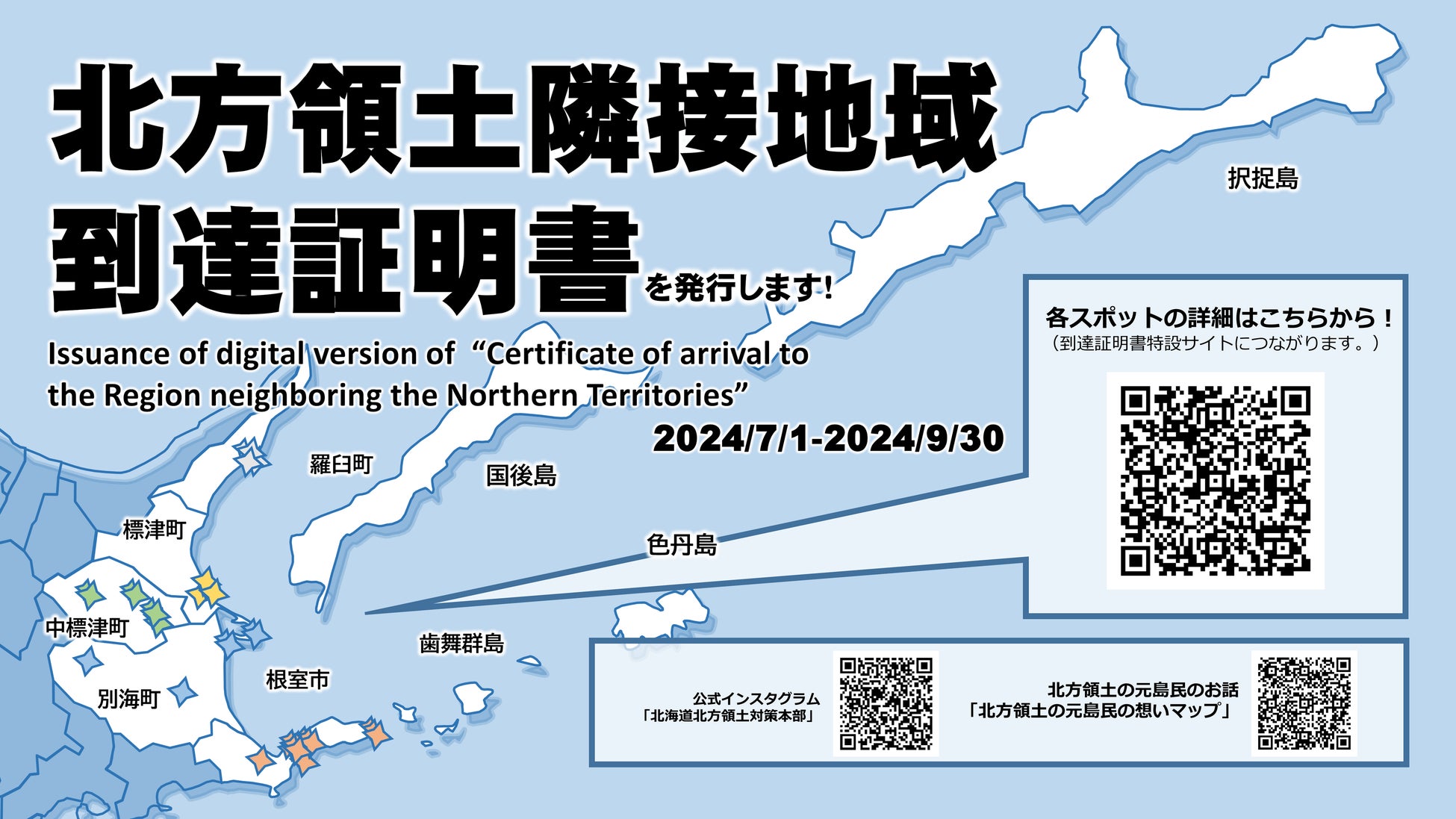 根室振興局北方領土対策課では、7月1日より「北方領土隣接地域到達証明書」を発行します!