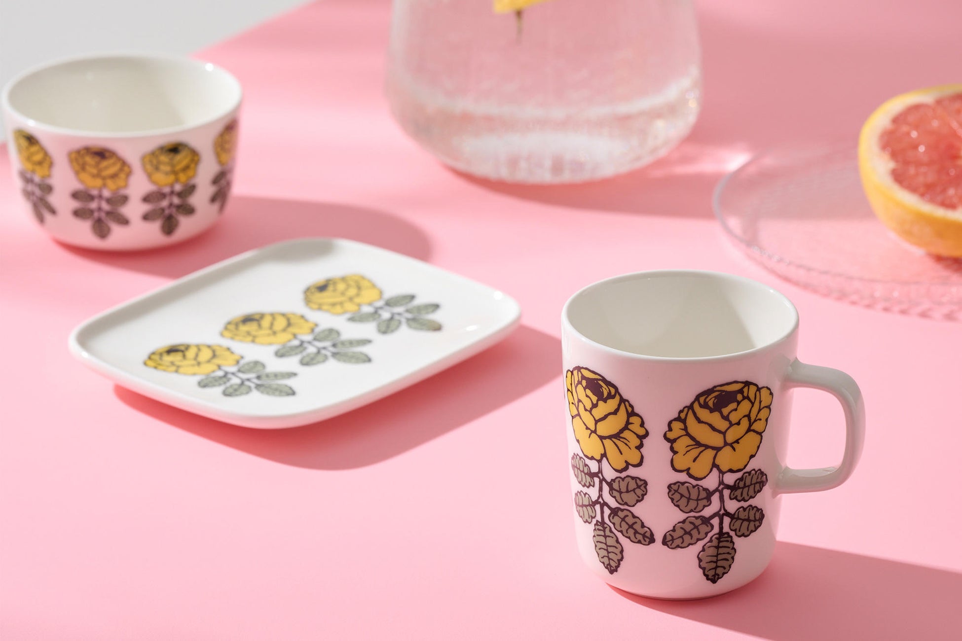 本コレクションでは、サフランイエローのヴィヒキルースのテーブルウェア3型が登場。人気の2.5dl マグカップ、12×15cm プレート、2.5dl ボウルがラインナップされます。