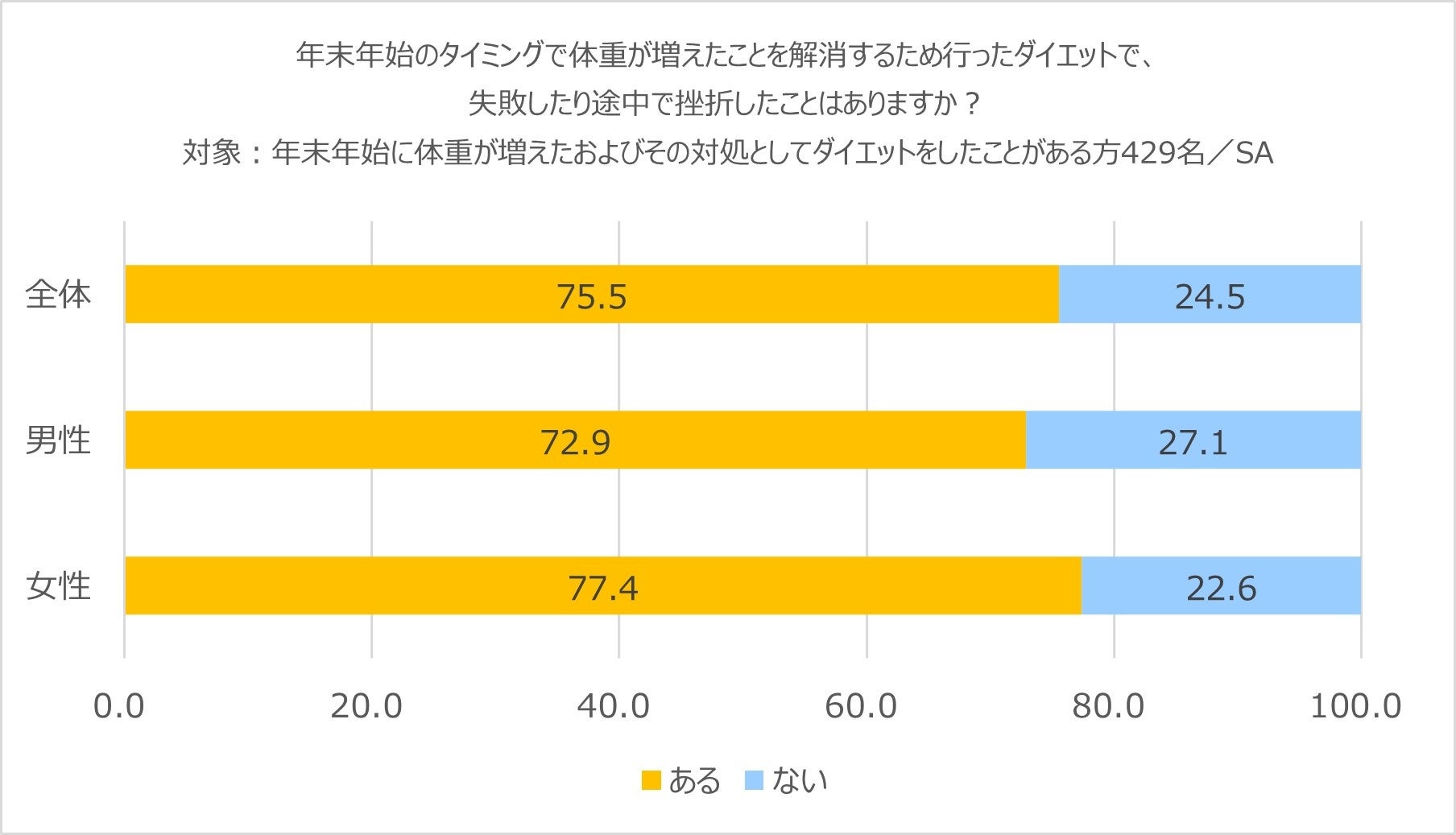 ■正月太り解消のためのダイエットで失敗や挫折した方は75.5%