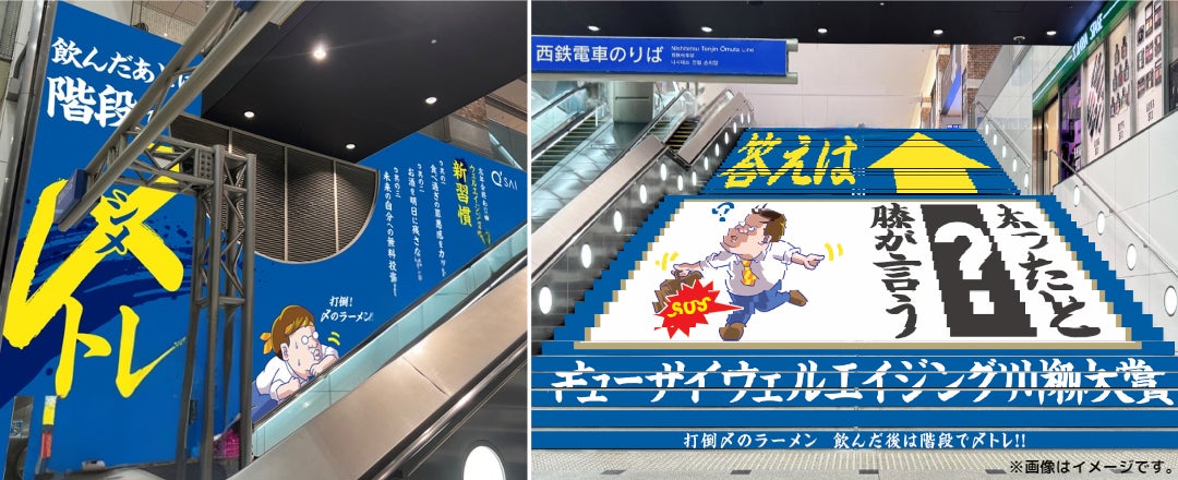 今回明らかになった”飲みどころ福岡”の皆さんに向けて、12月9日~15日の期間で、福岡市の西鉄福岡(天神)駅に日常生活の延長で無理なくできる新しい健康習慣の提案として、このたび「〆トレ」広告を展開いたします。本取り組みを通じて、地元福岡からカラダの健康とココロの前向きさを叶える"ウェルエイジング"な社会の実現に貢献してまいります。
