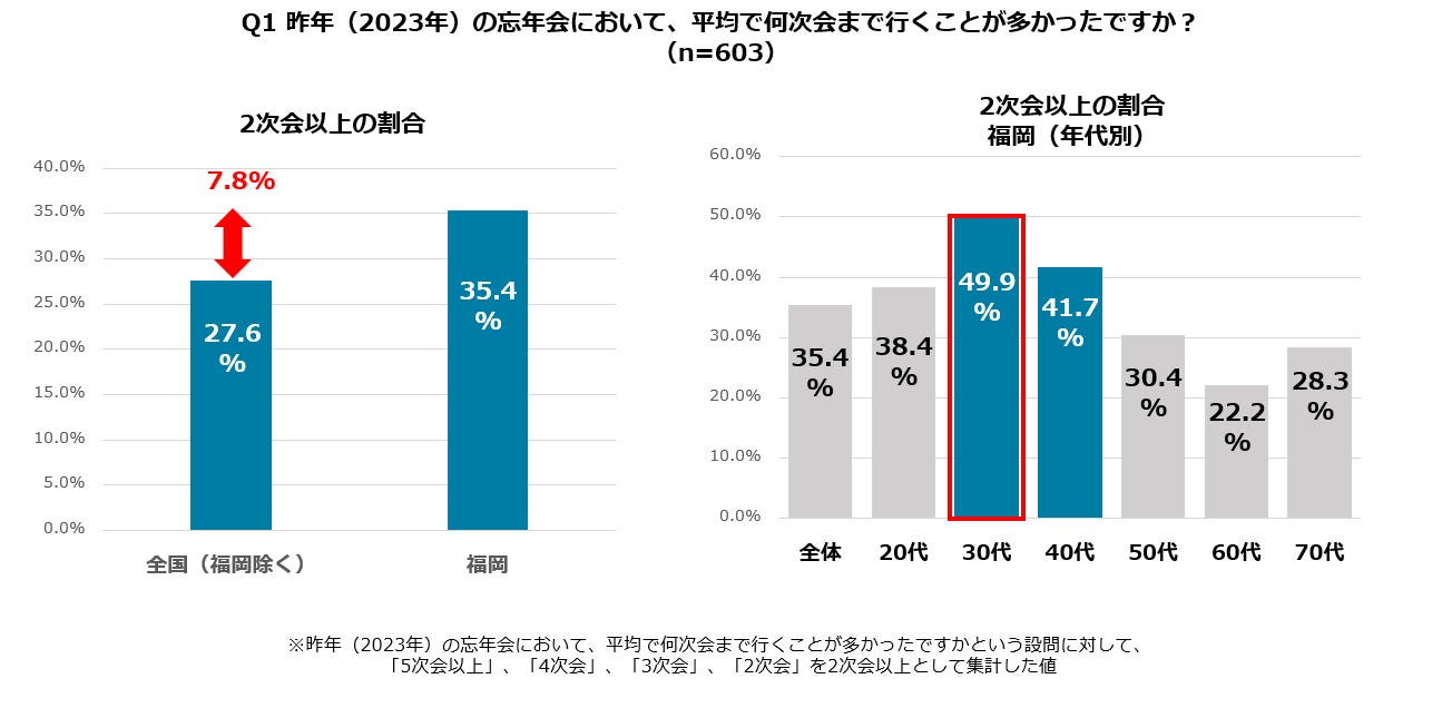 I. 【福岡の忘年会】30代の約5割が「もう一軒」を選択