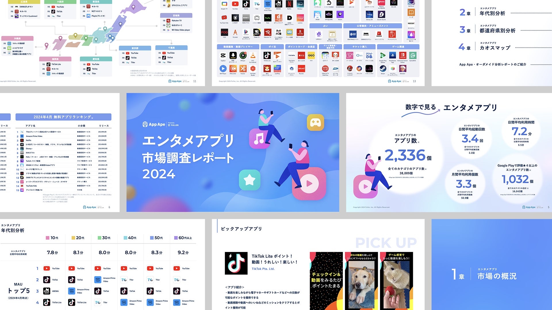 フラー株式会社(本社:新潟県新潟市、代表取締役:渋谷修太、山﨑将司、以下「フラー」)は、アプリ市場分析サービス「App Ape(アップ・エイプ)」で蓄積するデータをもとに、動画配信サービスやライブ配信アプリなどのエンタメアプリの最新動向や特徴をまとめた「エンタメアプリ市場調査レポート2024」を公開しました。