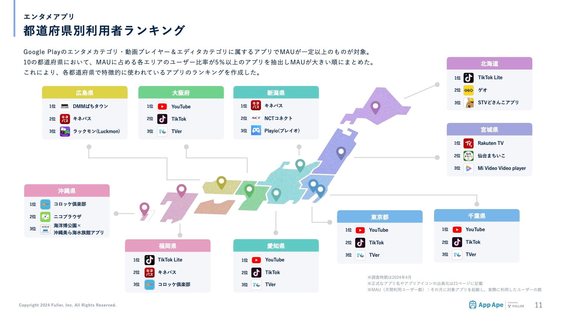 エンタメアプリ市場の概況や、ユーザーの年代別分析、都道府県別分析などさまざまな視点でアプリデータを調査しました。