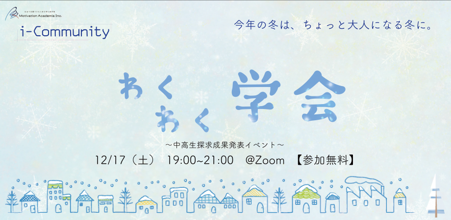 全国の中高生が集まるディスカッションコミュニティ「i-Community(アイコミュニティ)」のイベントは、オンライン開催のため全国どこからでも誰でも無料で参加いただけます。ぜひお気軽にご参加ください。