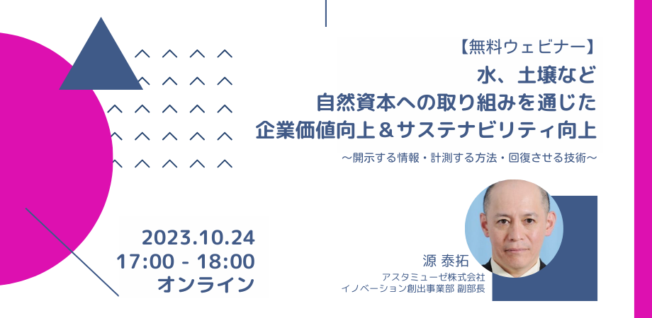 企業のサステナビリティ関係者向け無料ウェビナー「水、土壌など自然資本への取り組みを通じた企業価値向上&サステナビリティ向上 ~開示する情報・計測する方法・回復させる技術~」を開催