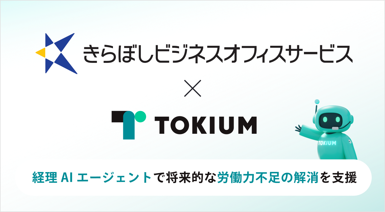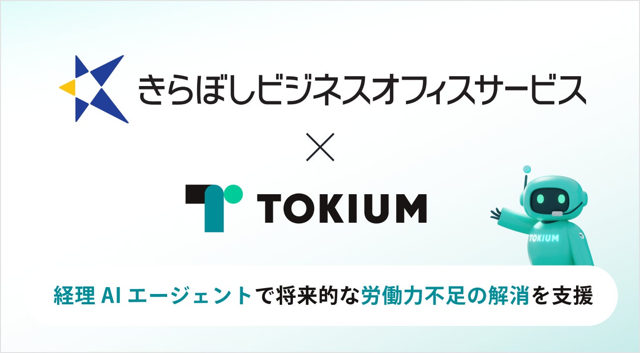TOKIUMときらぼしビジネスオフィスサービス株式会社が提携、経理AIエージェントで将来的な労働力不足の解消を支援