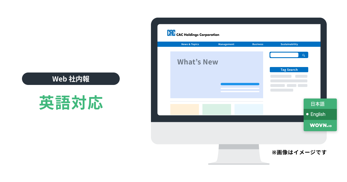 Wovn Technologies株式会社(以下 WOVN)が提供する Web サイト多言語化 AI ソリューション『WOVN.io(ウォーブン・ドットアイオー)』が、株式会社CAC Holdings(本社:東京都中央区、代表取締役社長:西森 良太、以下 CAC Holdings)の Web 社内報に導入され、英語での公開が開始されました。これにより海外拠点とのコミュニケーションを強化し、グループでの一体感をさらに加速させていきます。