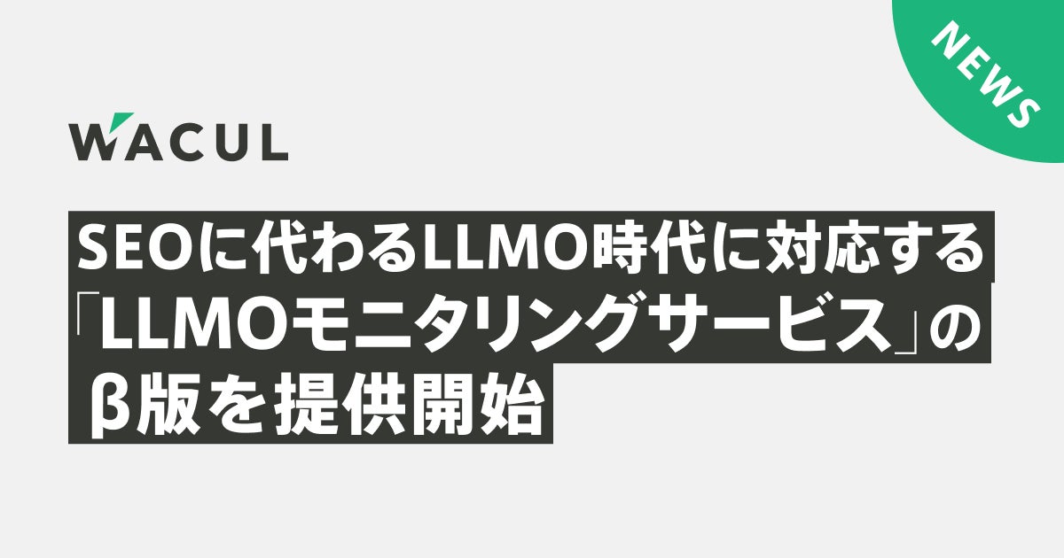 データと知⾒を核に、戦略から実⾏までマーケティングDXを⼀気通貫で⽀援する株式会社WACUL(本社:東京都千代⽥区、代表取締役社⻑:⼤淵 亮平、証券コード:4173、読み:ワカル、以下当社)は、SEOに代わる「LLMO(Large Language Model Optimization)」時代に対応する、「LLMOモニタリングサービス(β版)」の提供を開始したことをお知らせいたします。