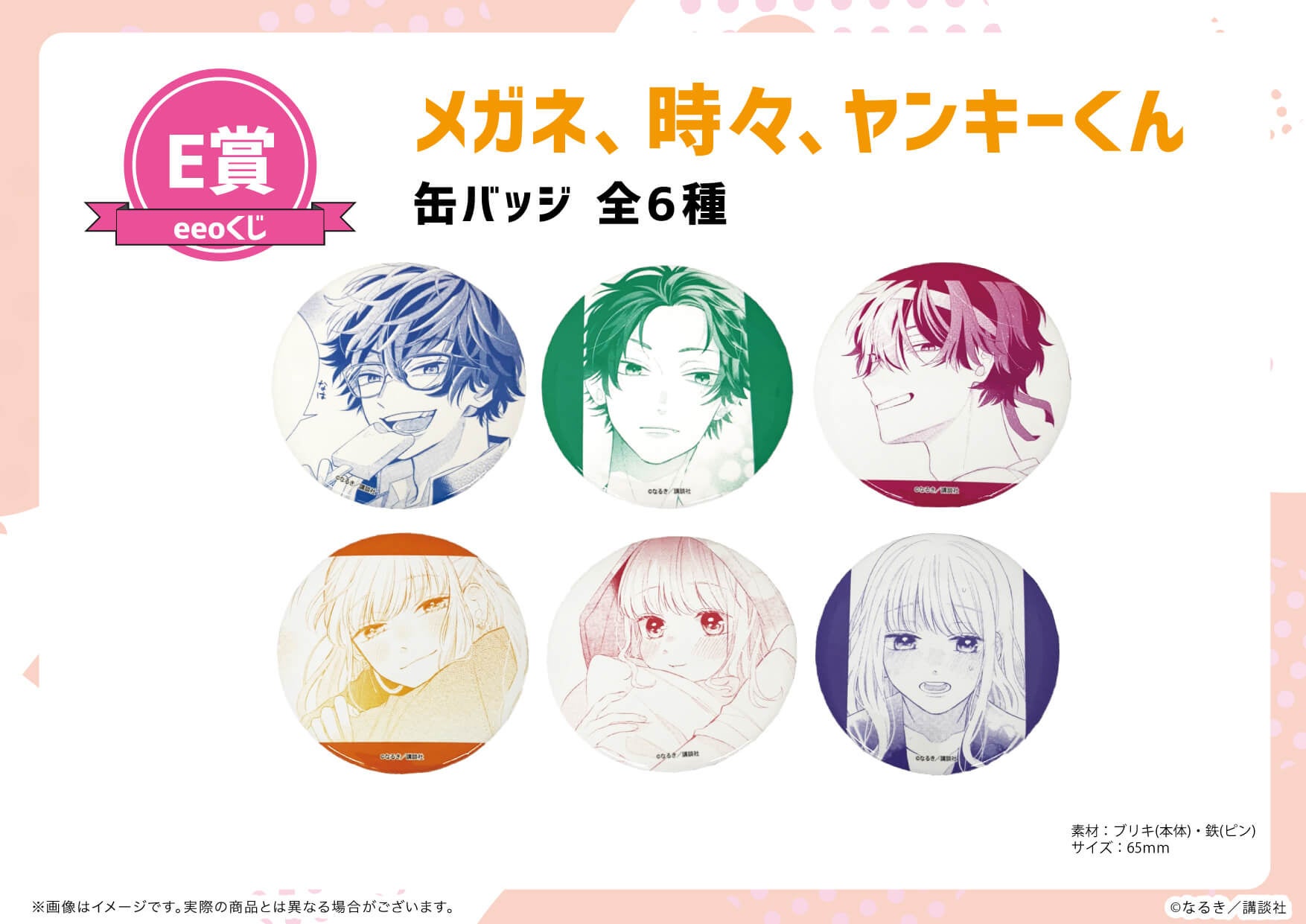 作中の“青春あふれるワンシーン”を切り取った缶バッジもコンプリートしたいところ。『メガネ、時々、ヤンキーくん』の魅力がぎゅ~っと詰まった豪華景品は、どれもファン必携です!