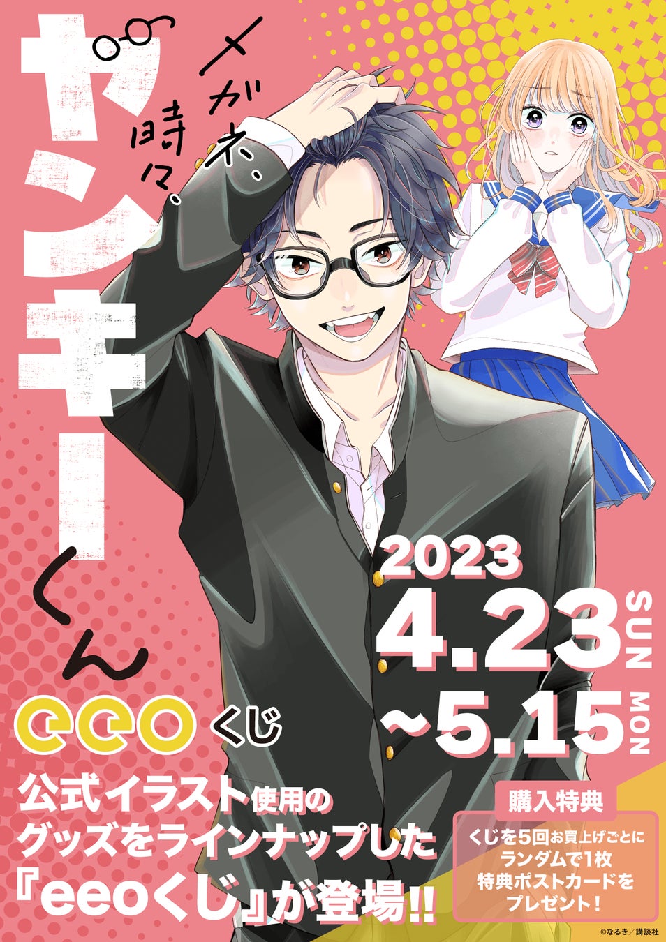 人気漫画『メガネ、時々、ヤンキーくん』のオンラインくじ「eeoくじ」が4月23日より発売! ギャップ萌え必至の公式イラストが豪華景品に
