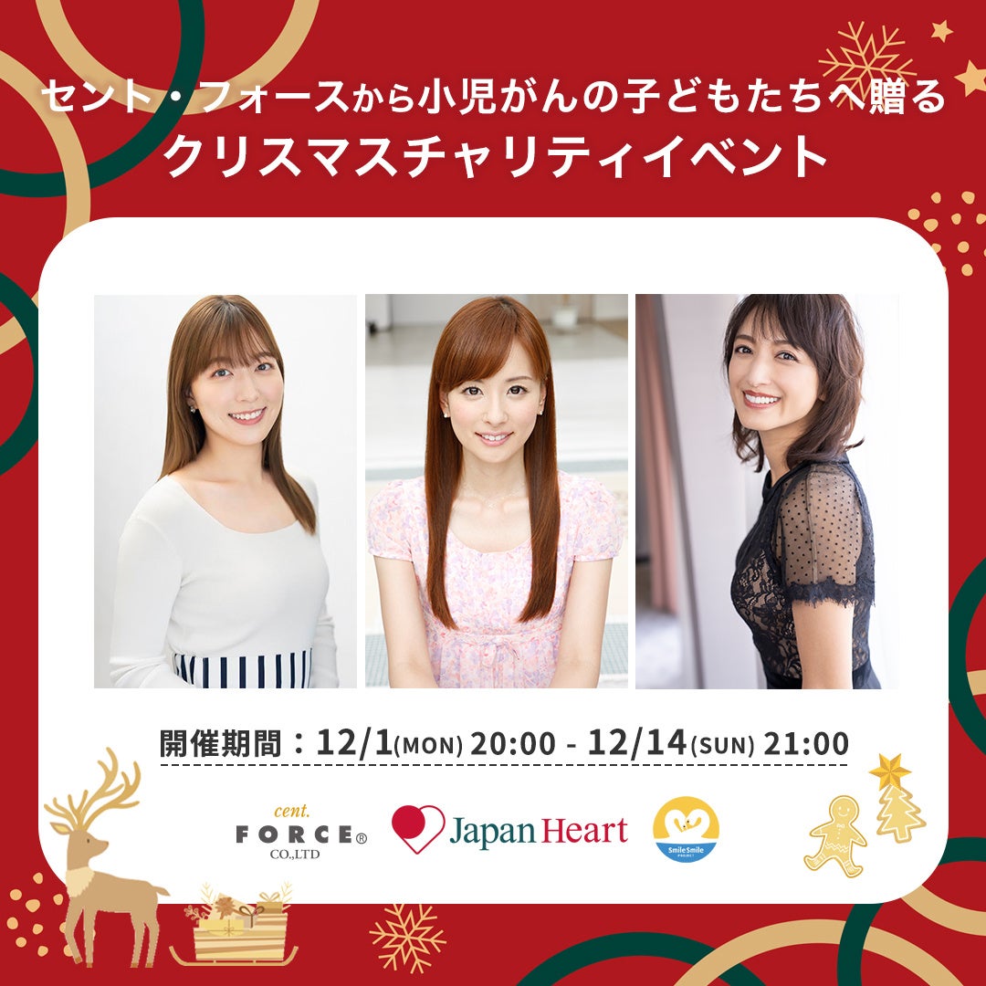 同企画は、望月理恵、皆藤愛子、阿部香也子をはじめとする38名のセント・フォース所属アナウンサーが “サンタフォース”に扮し、特設サイトで彼女たちの直筆クリスマスメッセージカードとソーラーランタンやメッセージ動画を購入すると、その売上が日本で小児がんの子どもと家族をサポートする活動に充てられる仕組みです。