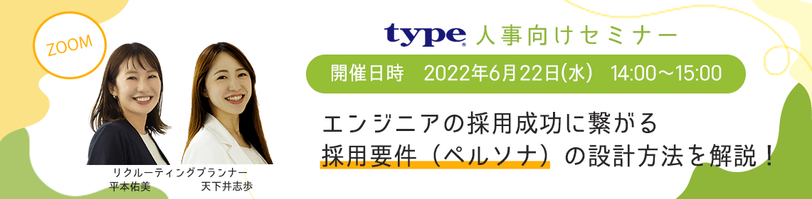 エンジニアの採用成功に繋がる採用要件(ペルソナ)の設計方法をリクルーティングプランナーが解説!(来週6月22日開催)/type人事向けオンラインセミナー