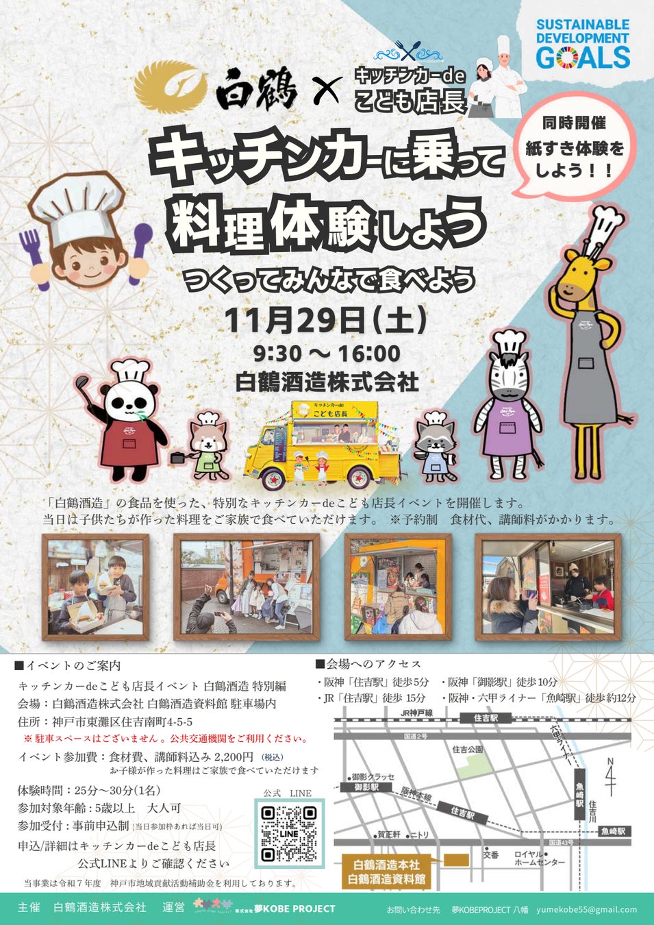 キッチンカーdeこども店長×白鶴のコラボイベント「キッチンカーに乗って料理体験しよう」2025年11月29日に白鶴酒造でこども向けイベント開催