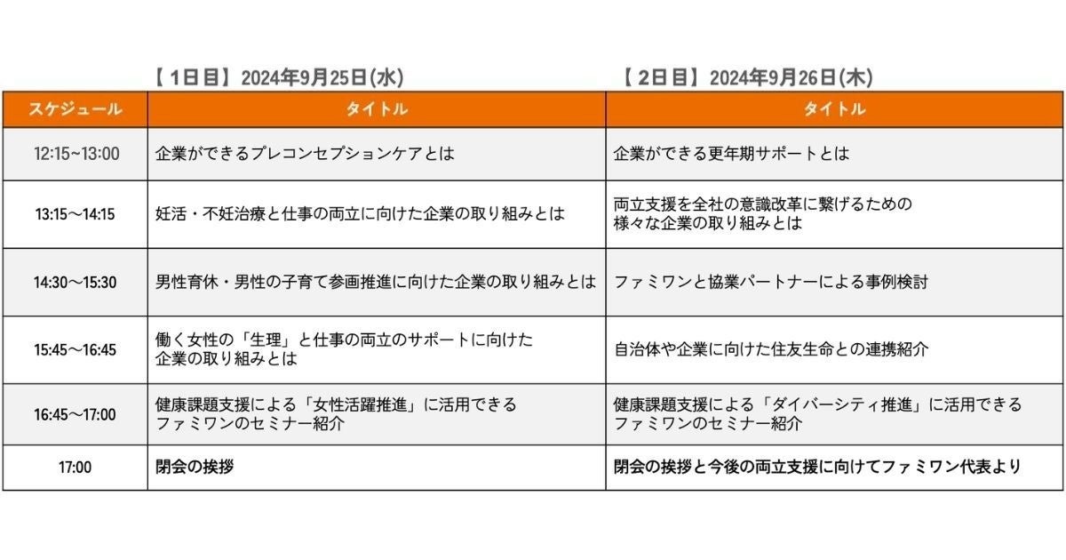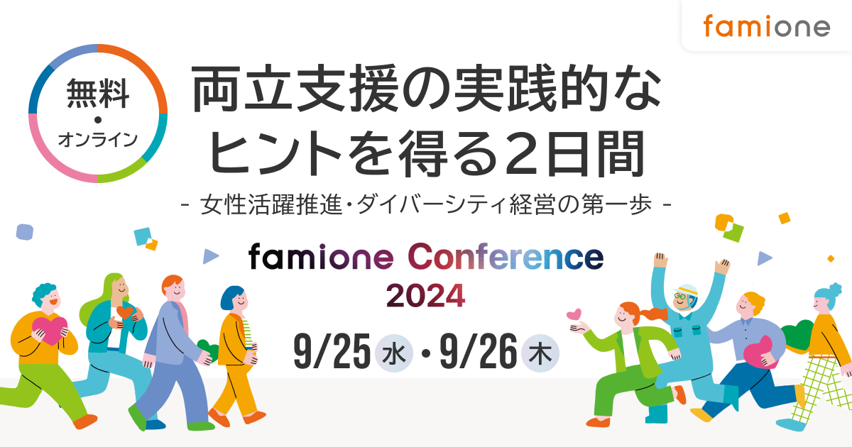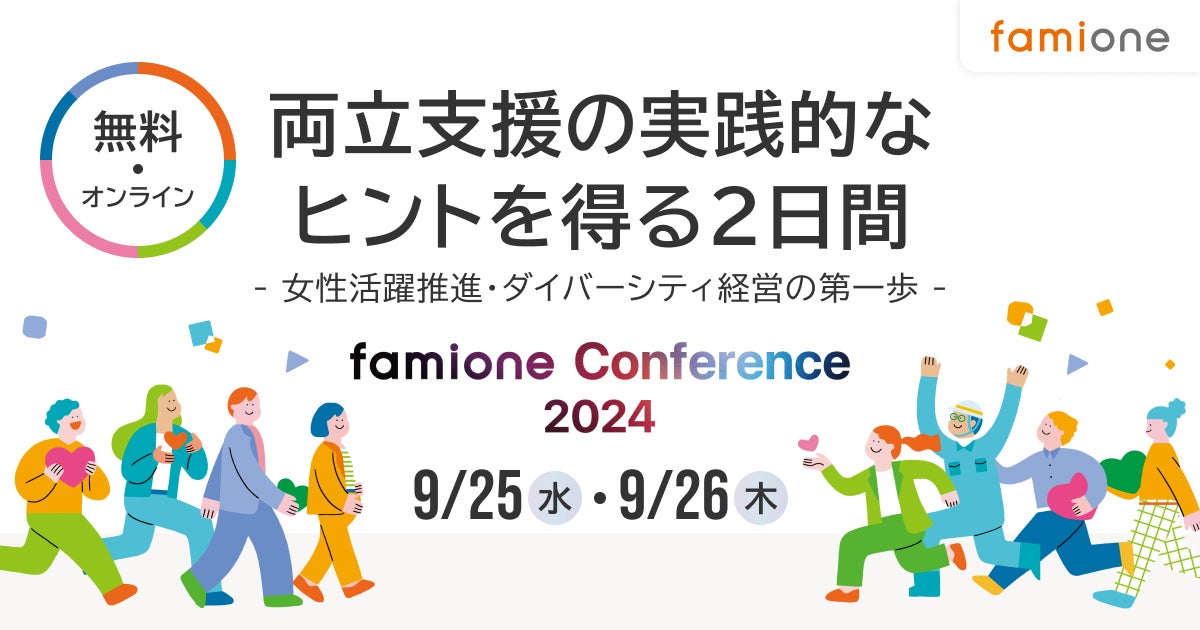 『両立支援の実践的なヒントを得る2日間〜女性活躍推進・ダイバーシティ経営の第一歩〜』をテーマに、「ファミワンカンファレンス2024」を9月25日、26日に開催します