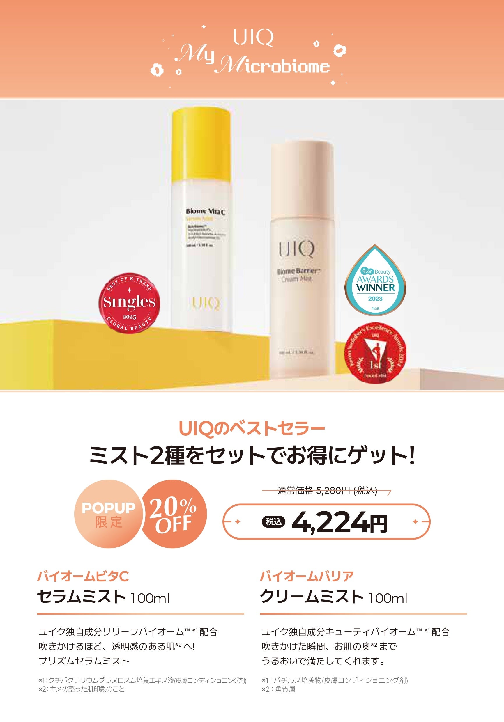 韓国発マイクロバイオームスキンケアブランド『UIQ(ユイク)』10月22日(水)より@cosme NAGOYAにてPOP-UP STORE開催!