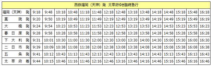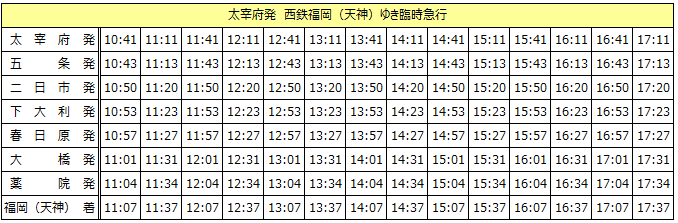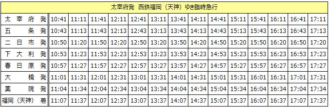※西鉄福岡(天神)駅~太宰府駅で約20~30分間隔運行
