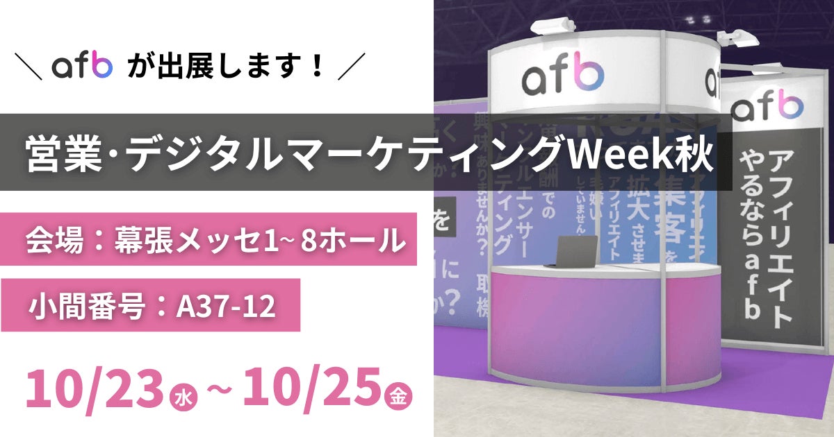 アフィリエイトプラットフォーム「afb」が「営業・デジタルマーケティングWeek秋2024」に出展いたします!