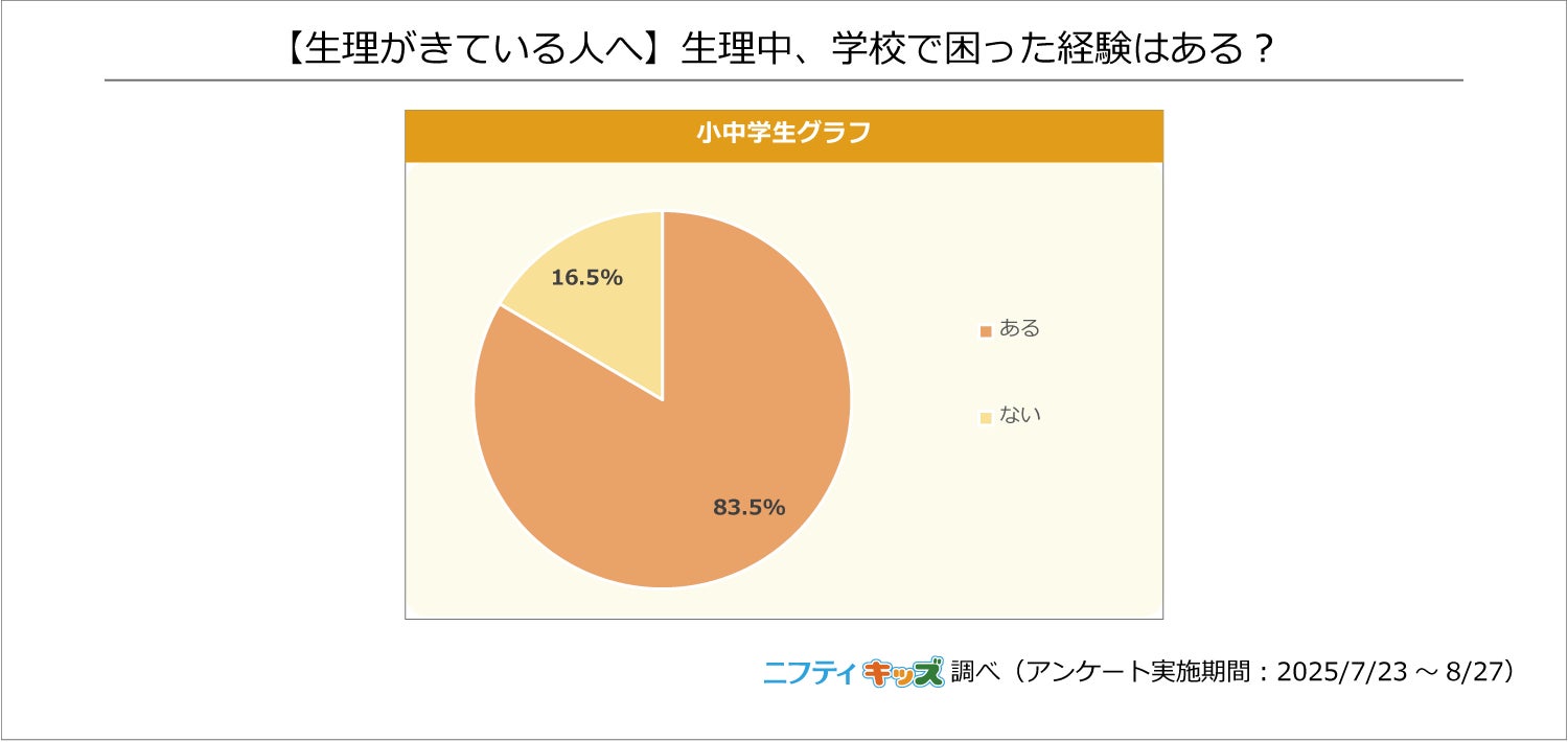 生理が始まっている小中学生のうち、約8割が「ある」と回答しました。