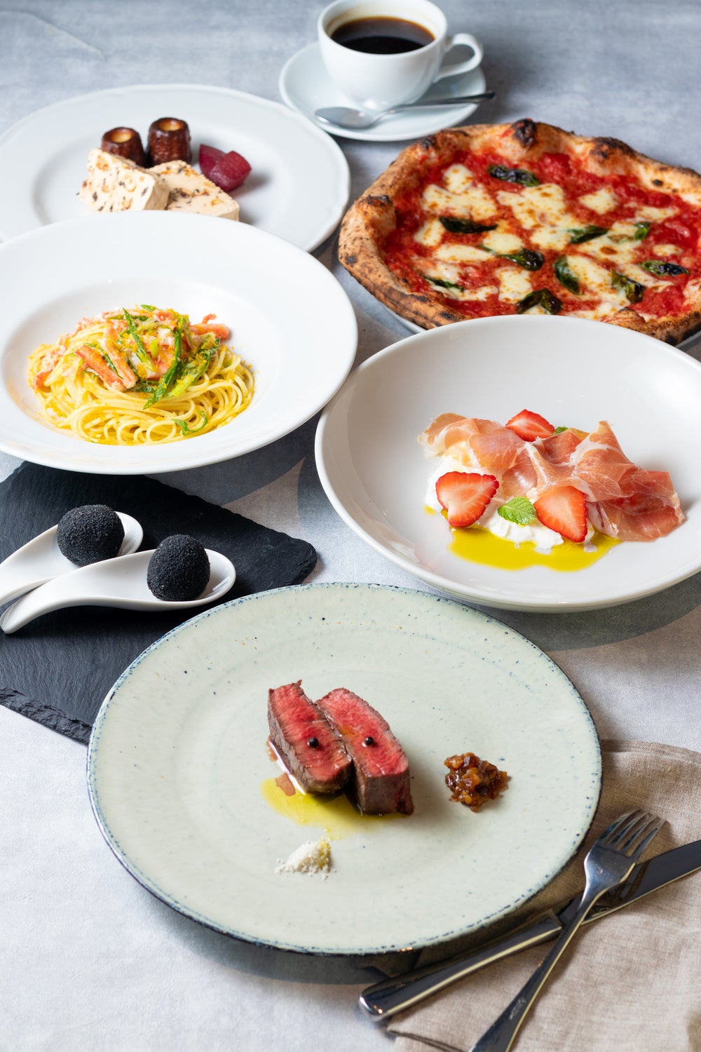 薪窯で香ばしく焼き上げる全12種のナポリピッツァをメインに、地産野菜を使った多彩なメニューを