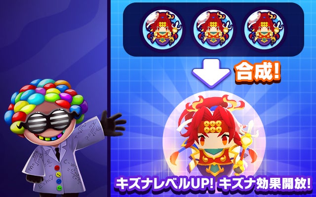 キズナ合成画面でモンQのキズナレベルやキズナカプセルに関する説明、キズナのかけら交換所でキズナカプセルについて解説したチュートリアルが追加されます。また、キズナ合成画面は、よりスムーズに使えるようキズナレベル単位でキズナカプセルが使えるようになります。あわせて、レベルアップに必要なキズナカプセルを持っていない場合、「交換する」ボタンからその場で引き換えできます。