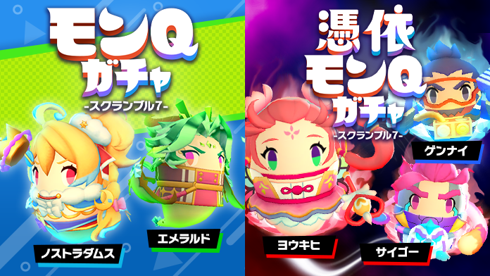 株式会社MIXI(東京都渋谷区、代表取締役社長:木村 弘毅)は、モンストシリーズのアクションスマホゲームアプリ「ゴーストスクランブル」(以下ストブル)を3月31日(金)にVer.2.2へアップデートします。また、本日から開幕する「スクランブル7」では、味方のオバケ「モンQ」が排出されるガチャに、モンストでおなじみの「ノストラダムス」「エメラルド」「ヨウキヒ」が新登場します。