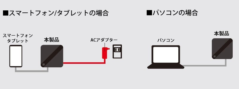 付属のACアダプター (スマートフォン・タブレット接続時に使用します)