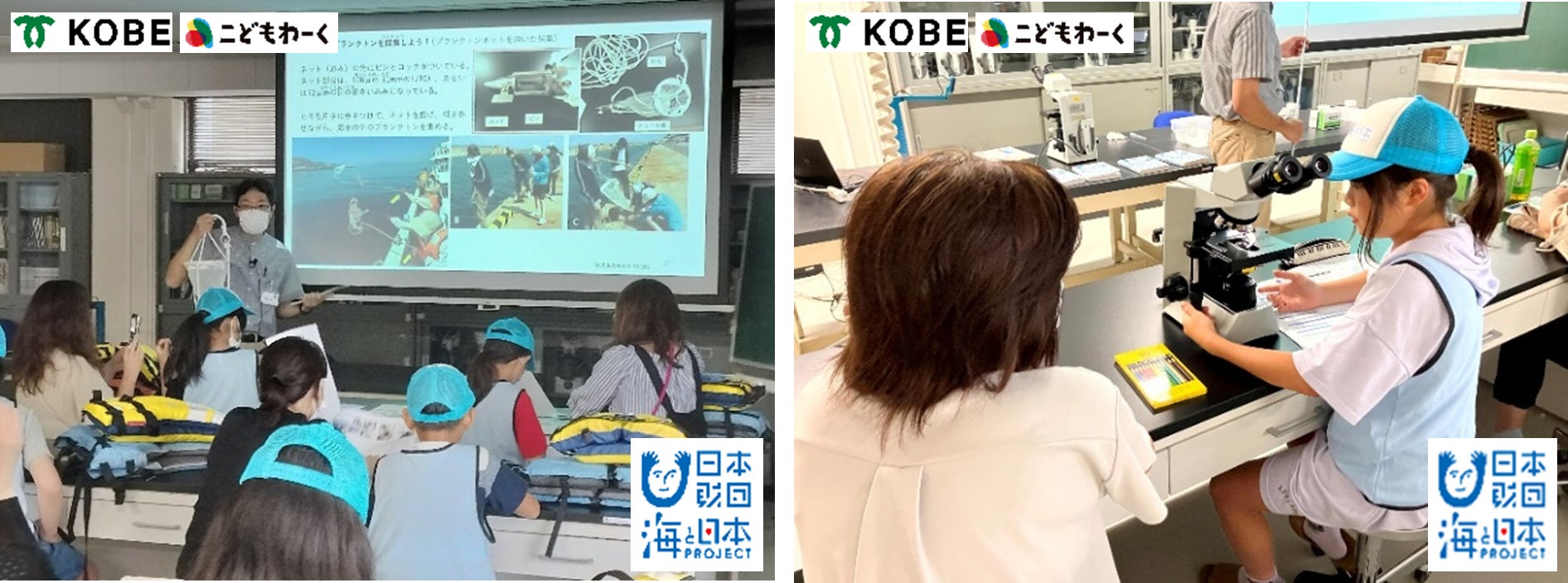 今夏2023年7月2日(日)~8月26日(土)、神戸市内近郊&各所にて開催される「こどもわーくin神戸2023」の一環として、2023年7月8日(土)、神戸大学の協力の下、内海域環境教育研究センターマリンサイトにて「海のプランクトンの生態を調査する研究員のお仕事をしよう!」を開催しました。私たち人間に豊かな恵みをもたらしてくれる一方、人間活動の影響も受けやすいという性質を持つ“閉鎖性海域”の自然を調べ、環境の保全や修復につなげていくための研究を行っている内海域環境教育研究センターで、子どもたちは、海における食物連鎖の土台として、海全体と深くかかわるプランクトンの生息状況を調査するお仕事をしました。
