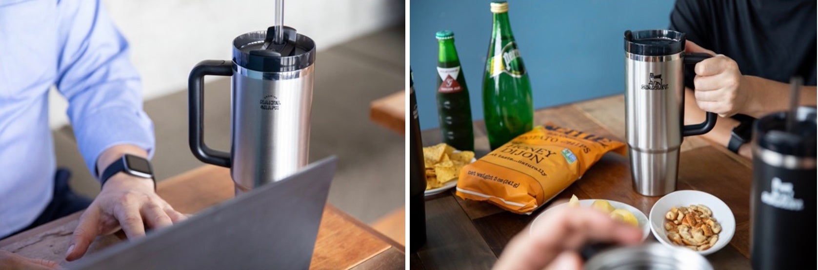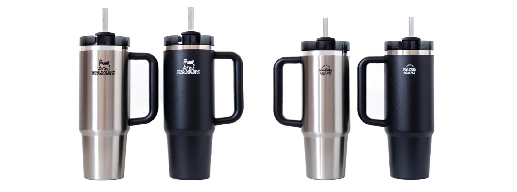 シルバーカラーは、ロゴやハンドル、蓋部分をブラックに変更するなど、インラインとは違う細かい仕様変更を加えたこだわりの配色。ブラックカラーは、インラインの配色を採用し、ロゴを白にすることで強調。一見すると、通常のクエンチャーボトルと変わらないデザインであるものの、よく見るとハンドドローイングされた愛くるしいスタンレーのアートワークロゴがクスッとさせてくれるさりげないデザイン。