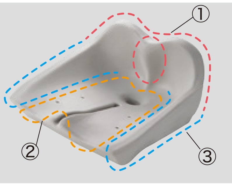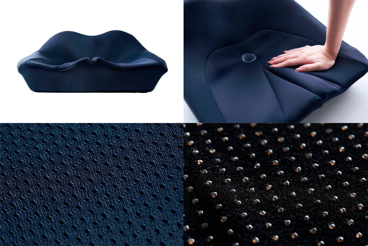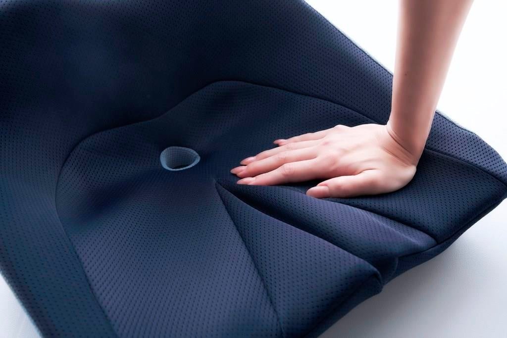 独自の腰周りをフォローする立体構造がお尻~太ももを包み込み、背骨を立たせるようなシャキッとした座り心地に。仙骨を支え、背骨を立たせることで。腰周りの負担を軽減し、無理なく美姿勢へと導きます。※本品使用時のみ