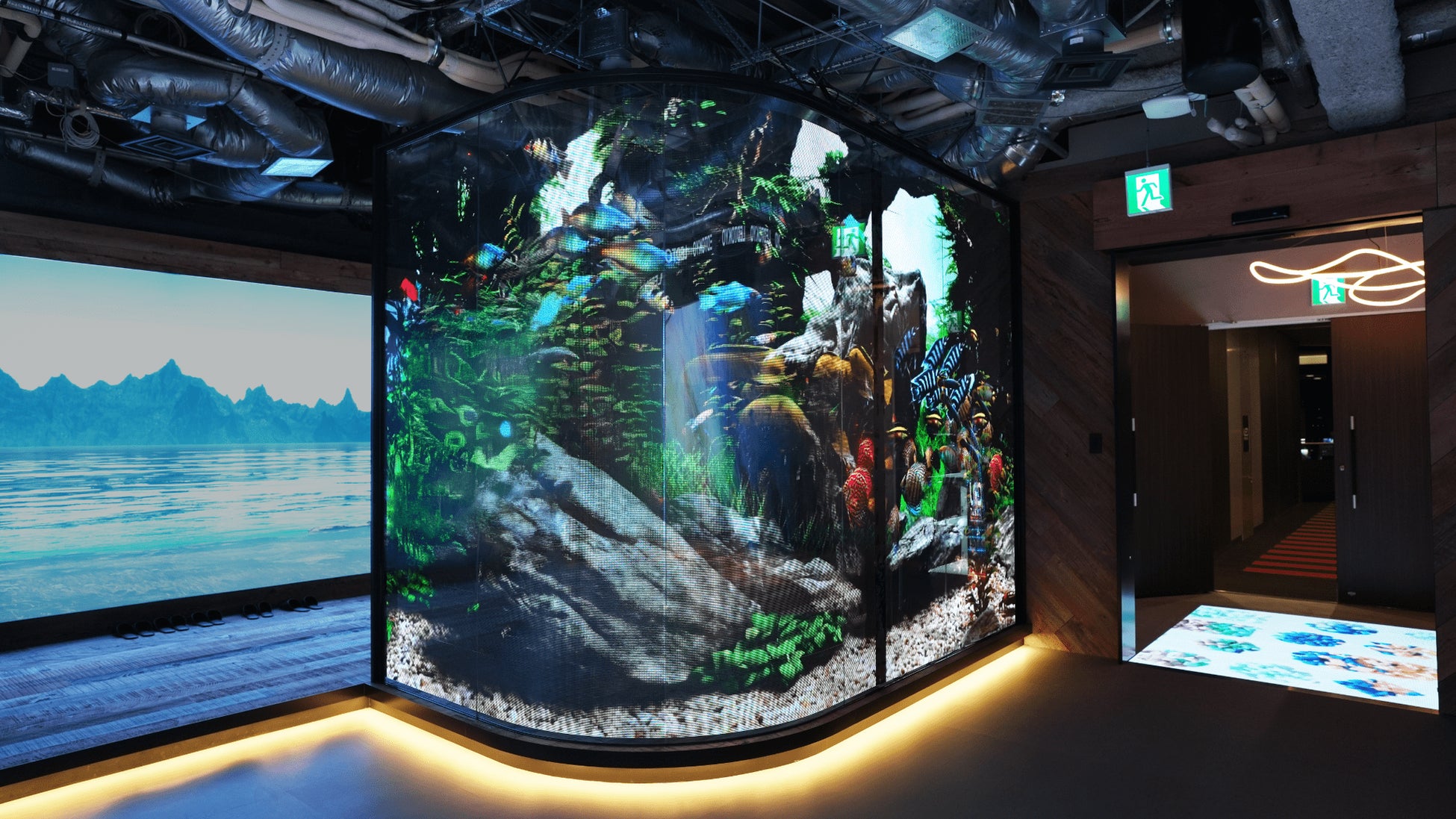常設型イマーシブLED BOXは、ピッチ1.9mmのLEDを採用しており、高精細かつ高解像度の美しい映像をご覧いただけます。また、イマーシブ(没入型)の名の通り、一足踏み入れると別の空間にいるかのような体験が可能となっています。