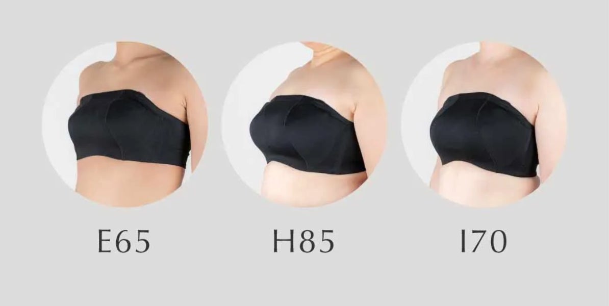 「バストのボリュームがあると着用できるストラップレスブラがない」というお客様の要望にお応えし、サイズ展開はカップがE〜Kカップ、アンダーサイズは65〜90サイズでぴったりのサイズを選んでいただけます。